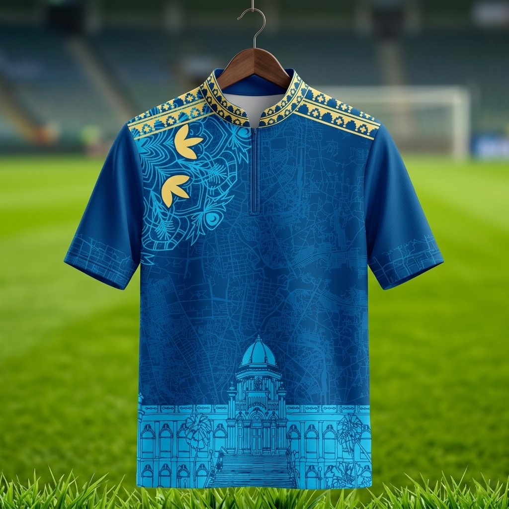 Step onto the field wearing a piece of art that tells a story. The Blue Heritage Football Jersey is a breathtaking fusion of modern sportswear and timeless cultural identity. Designed for players and fans who take pride in their roots, this jersey draws deep inspiration from the architectural grandeur of historic Bengal, bringing that majestic legacy to the football pitch in a way never seen before.